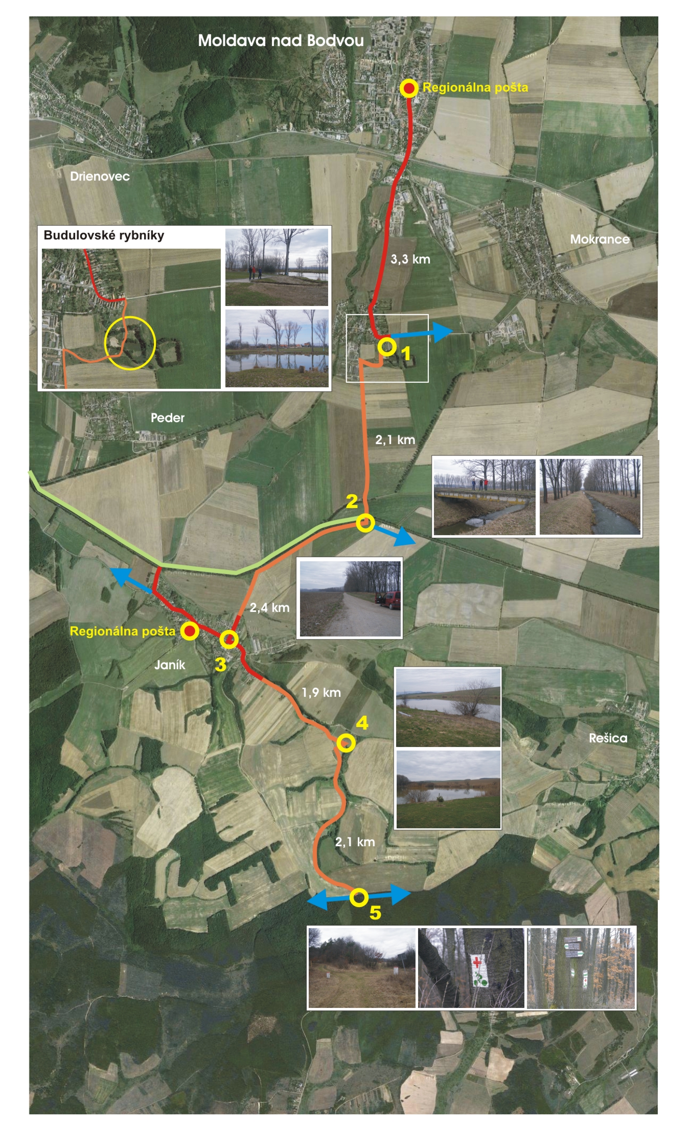 Centrum mesta Moldava – Budulovské rybníky (3,3km)